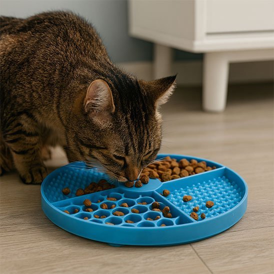 Ce plateau intelligent fait travailler les sens de votre animal: son odorat pour localiser la nourriture, son toucher pour naviguer entre les textures, et sa coordination pour extraire chaque bouchée. Contrairement aux gamelles classiques qui n'offrent aucun défi, ce tapis de lechage transforme la routine alimentaire en moment d'éveil et de satisfaction profonde.